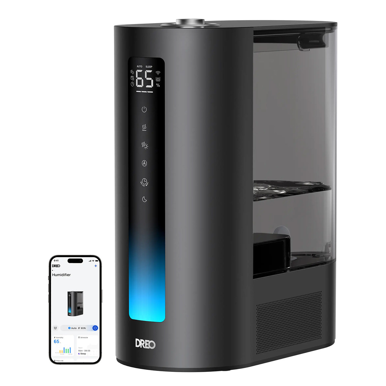 Dreo HM813S został wyposażony w precyzyjny czujnik wilgotności, który na bieżąco monitoruje warunki w pomieszczeniu i automatycznie dostosowuje intensywność nawilżania do aktualnych potrzeb. W trybie automatycznym urządzenie samodzielnie utrzymuje zadany poziom wilgotności w szerokim zakresie od 30 do 90%, eliminując konieczność ręcznej regulacji i stałej kontroli ustawień. Takie rozwiązanie pozwala zachować stabilny mikroklimat przez całą dobę, niezależnie od zmian temperatury czy pory roku. Dzięki automatyce działania Dreo HM813S pracuje w sposób przewidywalny i energooszczędny, zapewniając komfort oddychania bez angażowania użytkownika w codzienną obsługę.