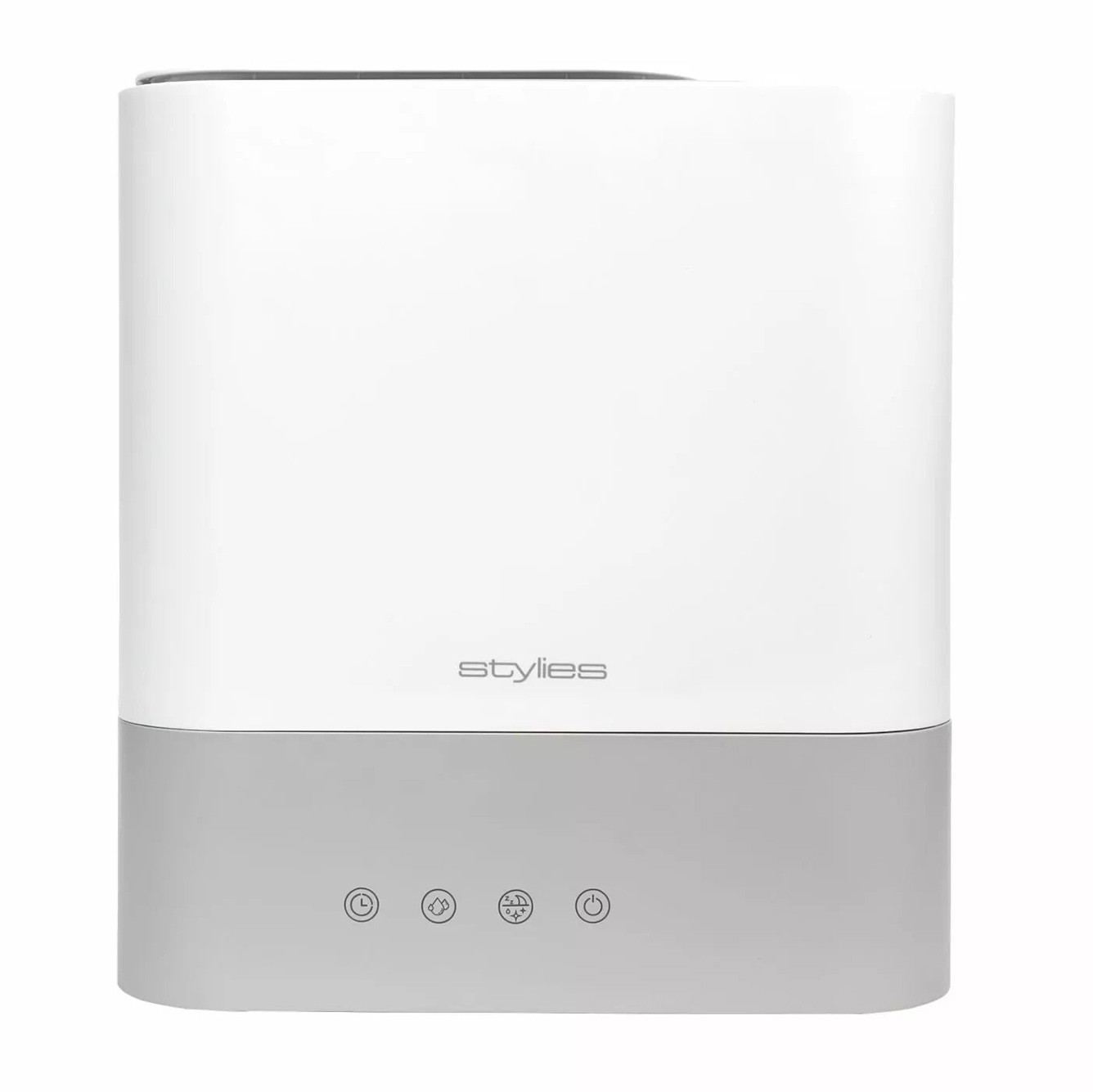 Stylies Astra to nawilżacz parowy przeznaczony do szybkiego i higienicznego nawilżania powietrza w pomieszczeniach o powierzchni do około 40 m², który szczególnie dobrze sprawdza się w sezonie grzewczym. Dzięki technologii podgrzewania wody urządzenie wytwarza sterylną parę wodną, wolną od bakterii, wirusów i drobnoustrojów, co zapewnia bezpieczne nawilżanie także dla alergików, dzieci oraz osób z wrażliwymi drogami oddechowymi. Wydajność na poziomie 400 ml/h pozwala na szybkie osiągnięcie pożądanego poziomu wilgotności i jej równomierne rozprowadzenie w całym wnętrzu. Stylies Astra wyposażono w duży, 5-litrowy zbiornik na wodę z wygodnym systemem uzupełniania top filling. Ponadto znajdziemy tutaj jonizator, funkcję aromaterapii, tryb nocny oraz timer, co zwiększa komfort codziennej obsługi. Nawilżacz pracuje z głośnością do 40 dB i charakteryzuje się poborem mocy do 300 W – typowym dla technologii parowej, oferując wysoką skuteczność działania przy prostej konserwacji i braku filtrów powietrza. Warto również zaznaczyć, że do dyspozycji użytkownika pozostają 2 prędkości nawilżania ustawianie ręcznie.