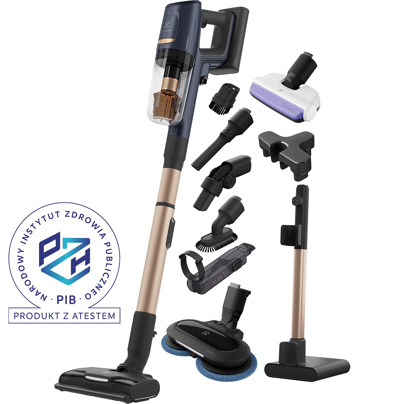 Trzeba przyznać, że Electrolux wspiął się tym modelem na wyżyny. Jest to idealne rozwiązanie dla alergików – oprócz powiększonego filtra HEPA mamy w zestawie elektroszczotkę UV, które pozbywają się zanieczyszczeń, w tym również alergenów. Wysoka kultura pracy łączy się tutaj z najwyższą jakością wykonania. Cieszy dosyć długi czas pracy na pełnym naładowaniu baterii. Co ważne, w modelu znajduje się wymienny akumulator, którego możemy wymienić na nowy w przypadku zużycia.