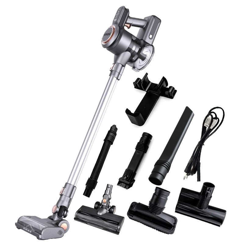 HYGSE handy to zwinny odkurzacz pionowy, który najlepiej sprawdza się na twardych podłogach, a pozytywnie zaskakuje skutecznością także na dywanach z grubszym włosiem (odkurzacz uruchamia wtedy tryb turbo). Elektroszczotka z LED dobrze zbiera większe okruchy, 6 poziomów mocy i tryb automatyczny ułatwiają dobór siły ssania, a czytelny wyświetlacz podaje najważniejsze informacje. Do 80 minut pracy w lekkim trybie, wymienny akumulator i niska głośność czynią go rozsądnym wyborem do mieszkań. Minusy? Delikatnie top-heavy konstrukcja może męczyć nadgarstek przy dłuższym sprzątaniu, a stacja nie mieści wszystkich akcesoriów. Jeśli te ograniczenia Ci nie przeszkadzają, HYGSE handy oferuje sporo funkcji i akcesoriów w bardzo dobrej cenie.